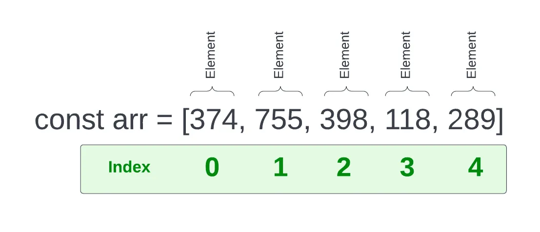 The values in an array are called elements. Each element has an index. The index is the position of the element in the array. The first element in an array has an index of 0. The second element has an index of 1, and so on. In just about every language, arrays are zero-based.