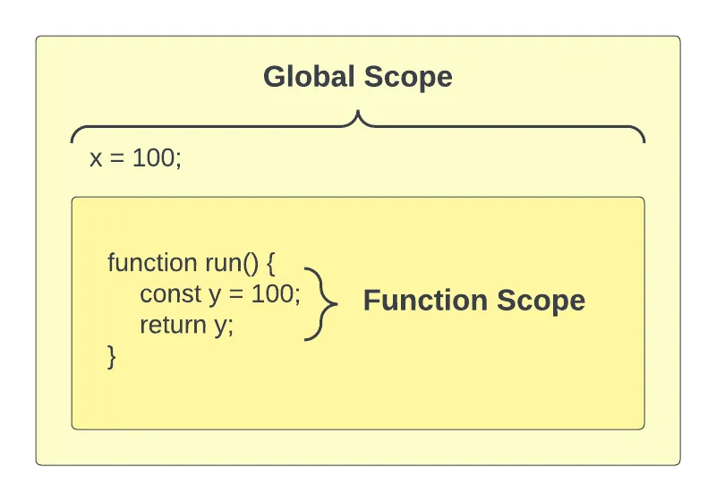 Scope is an important concept, not only in JavaScript, but in many other programming languages. Scope is the current area or context of a specific piece of code. There are certain rules for what is accessible in specific scopes.
