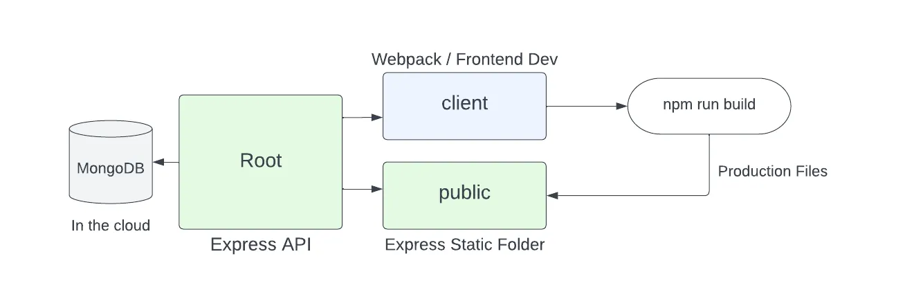 We already created the backend, which consists of the root folder with our Express API as well as the MongoDB database.
